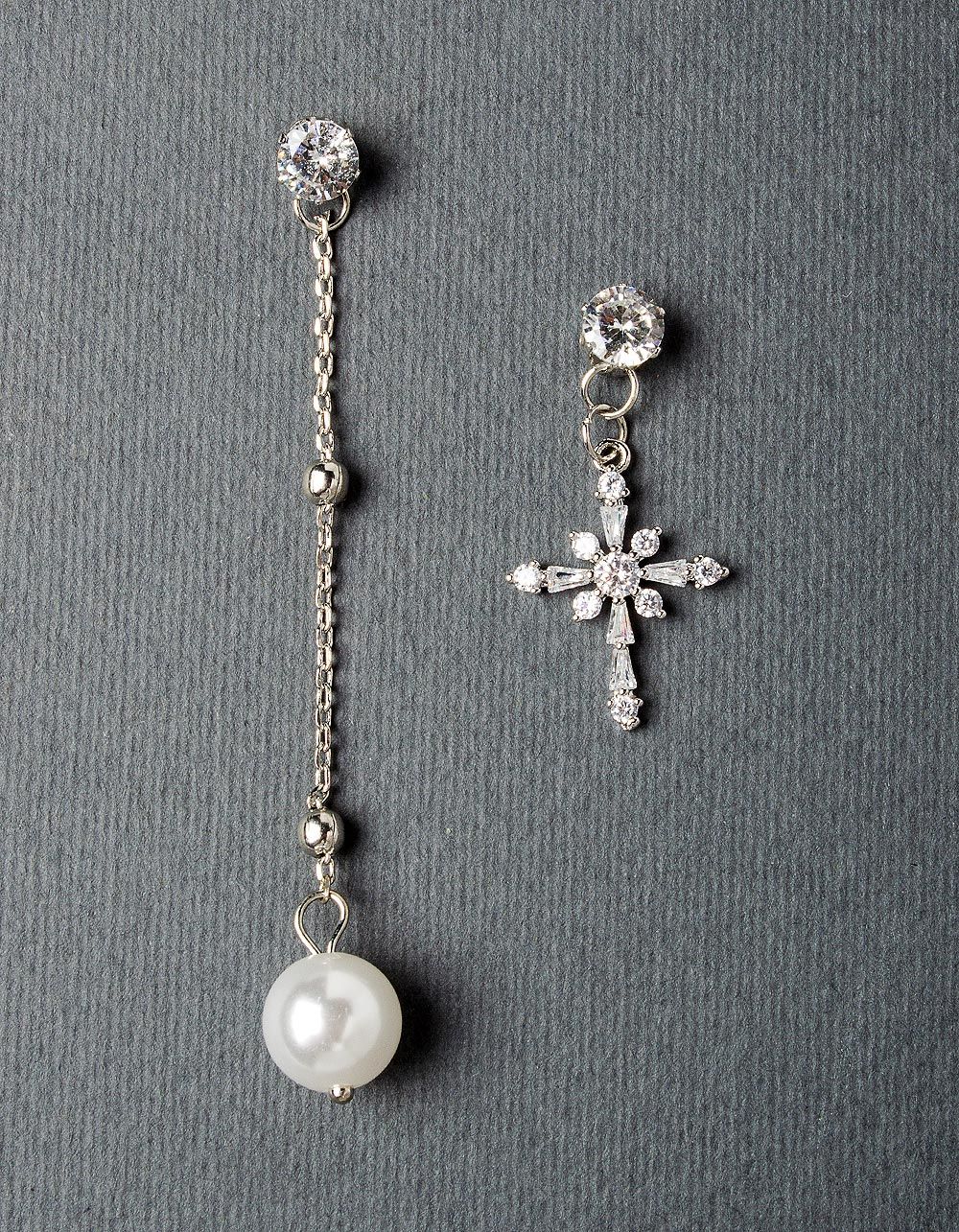Серьги удлиненные в стразах и с крестом
