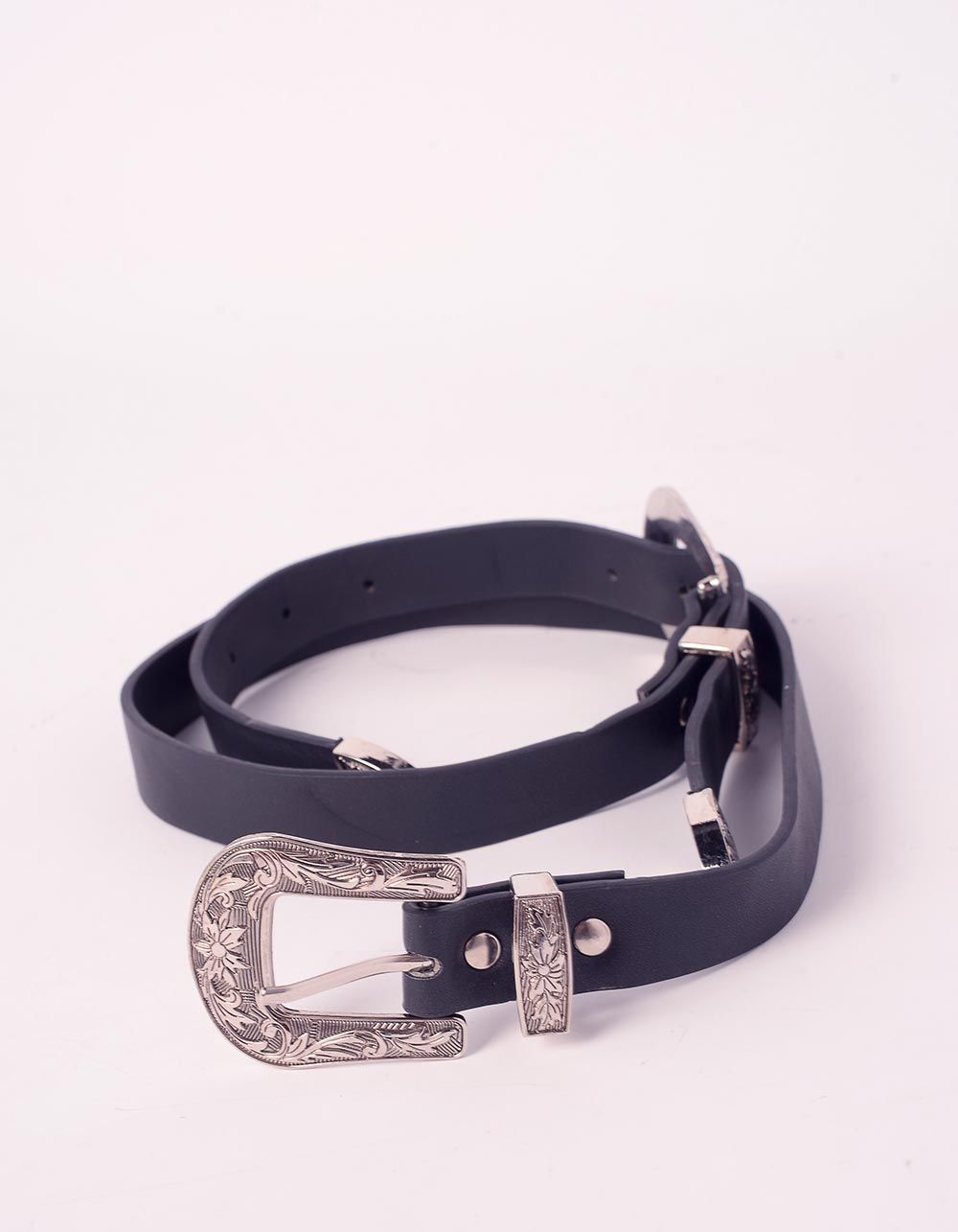 Ремінь з подвійною пряжкою та рельєфним узором