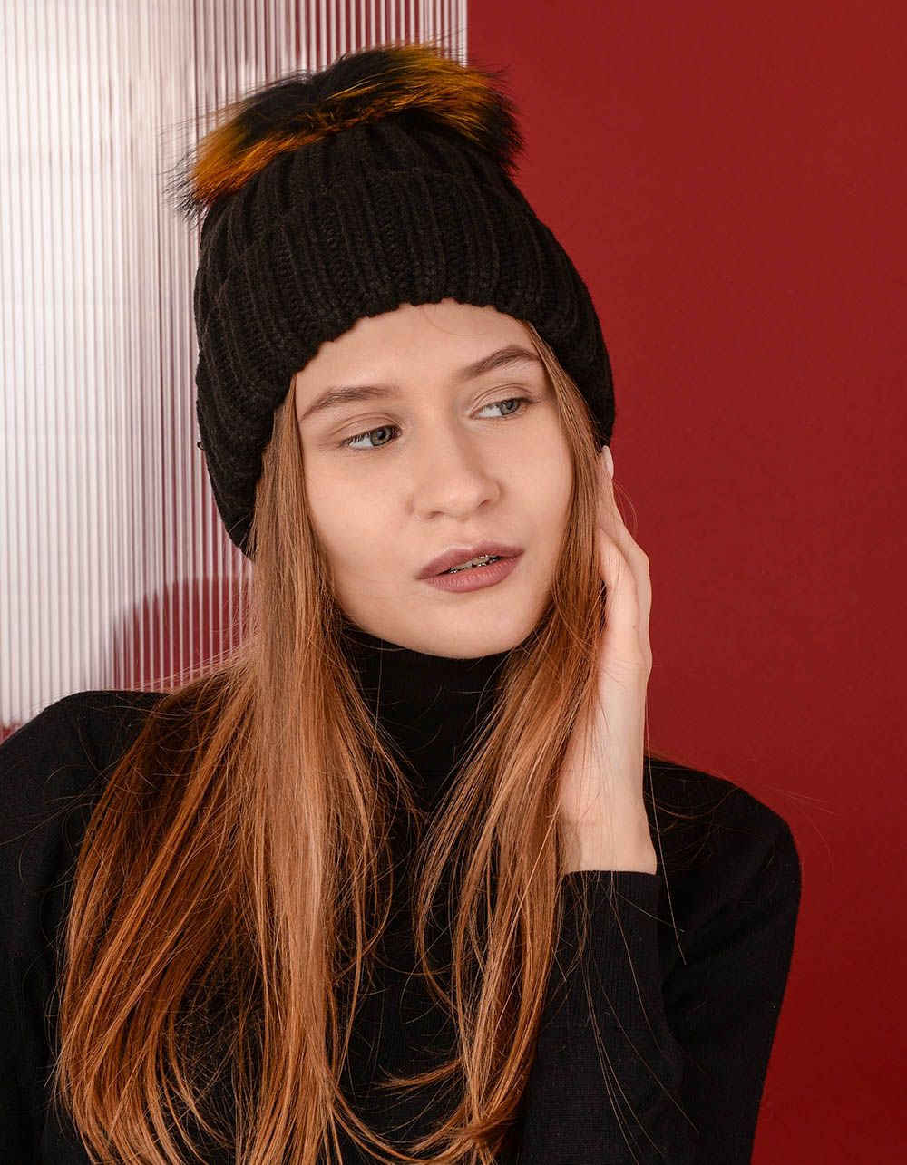 Шапка ковпак з кольоровим помпоном