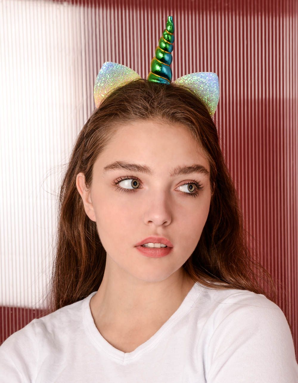 Обідок для волосся у вигляді єдинорога зі смугастими вушками
