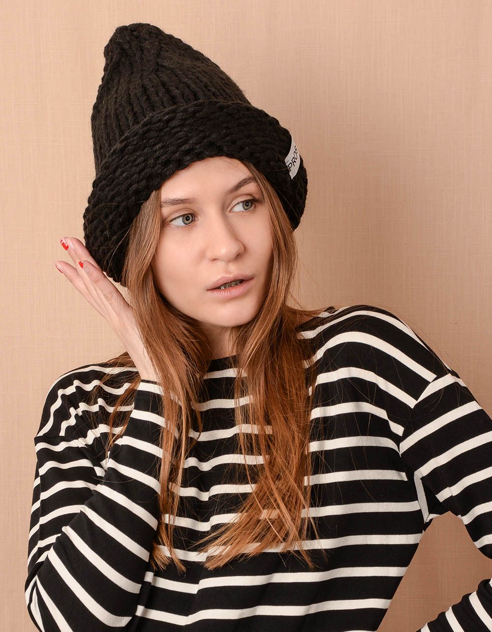 Шапка ковпак в'язана з відворотом