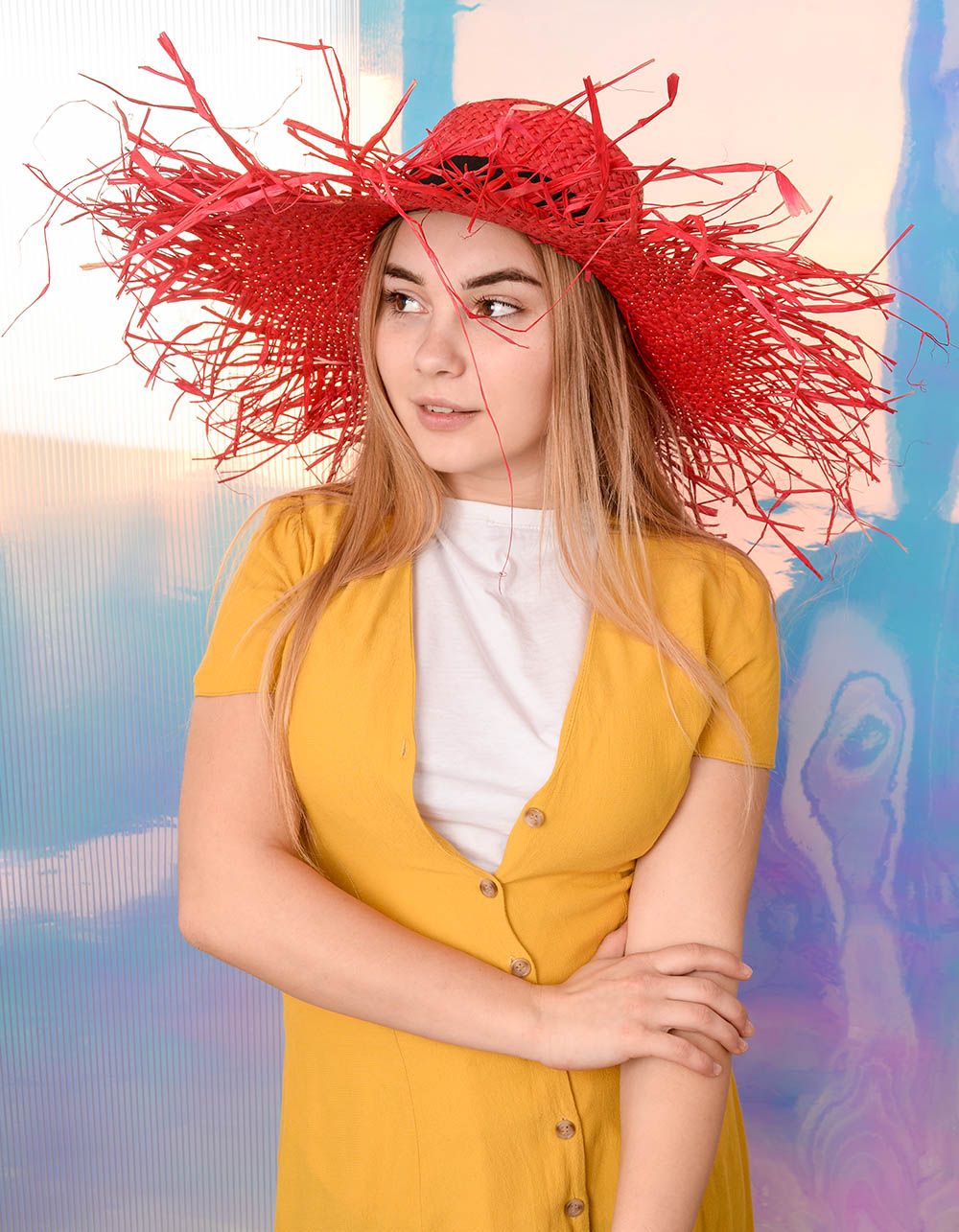 Капелюх зі штучної соломи з рваними краями