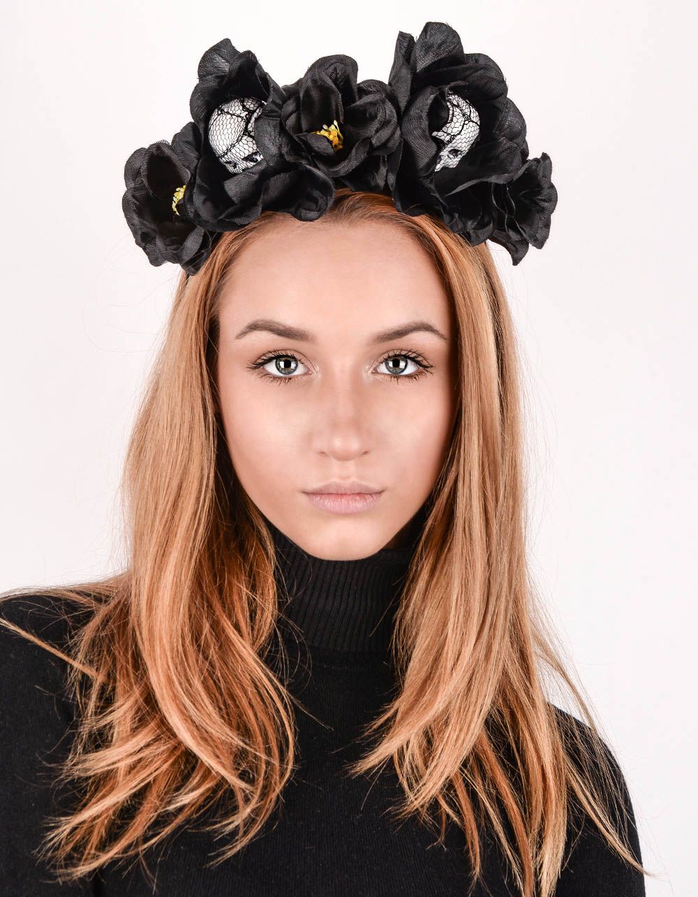 Обідок для волосся з трояндами та черепами