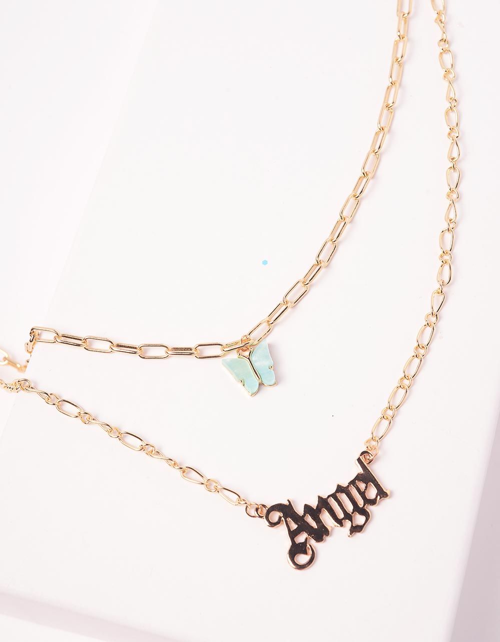 Підвіска із ланцюжків з метеликом та написом Angel