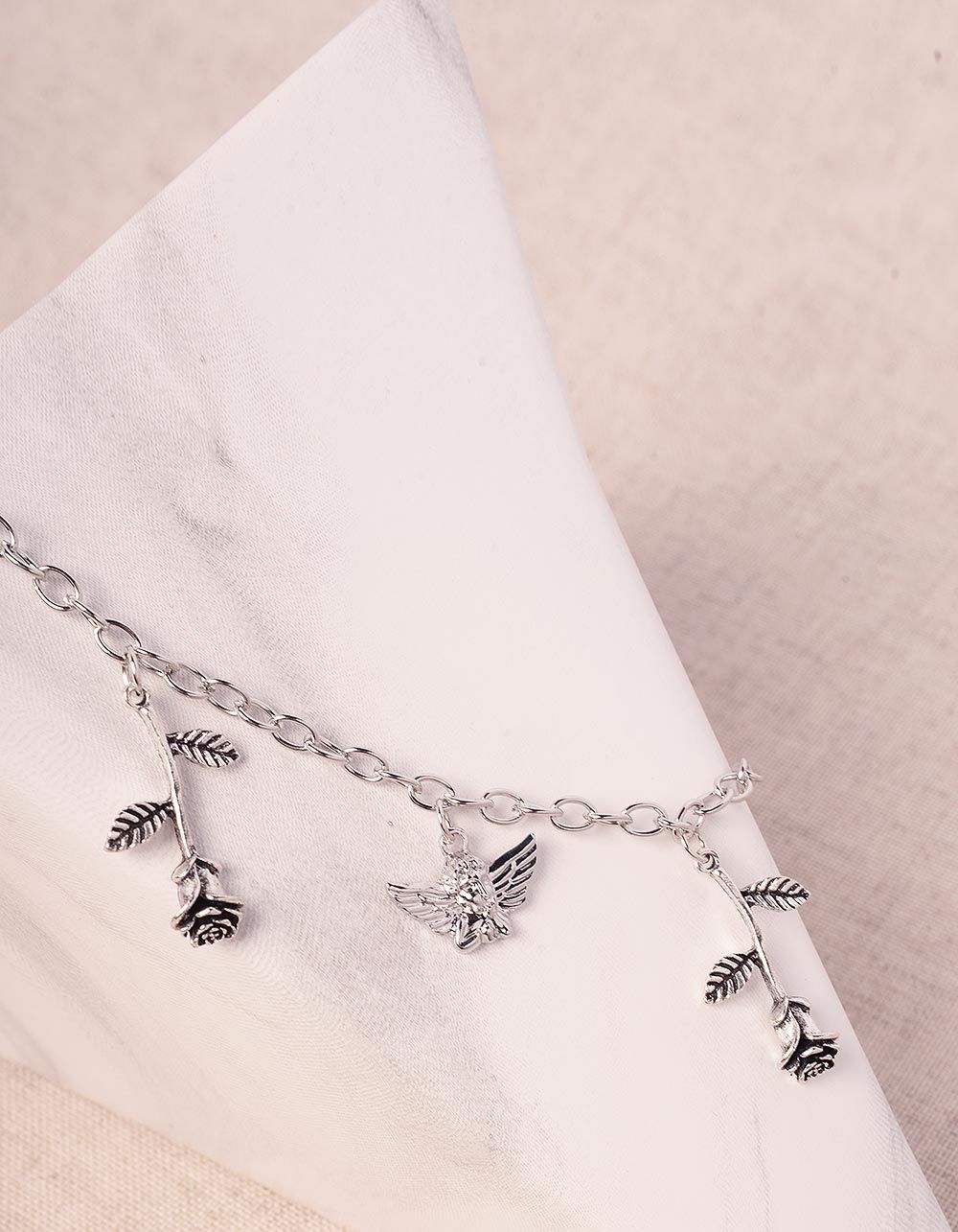 Підвіска на шию з кулонами у вигляді троянд та янгола
