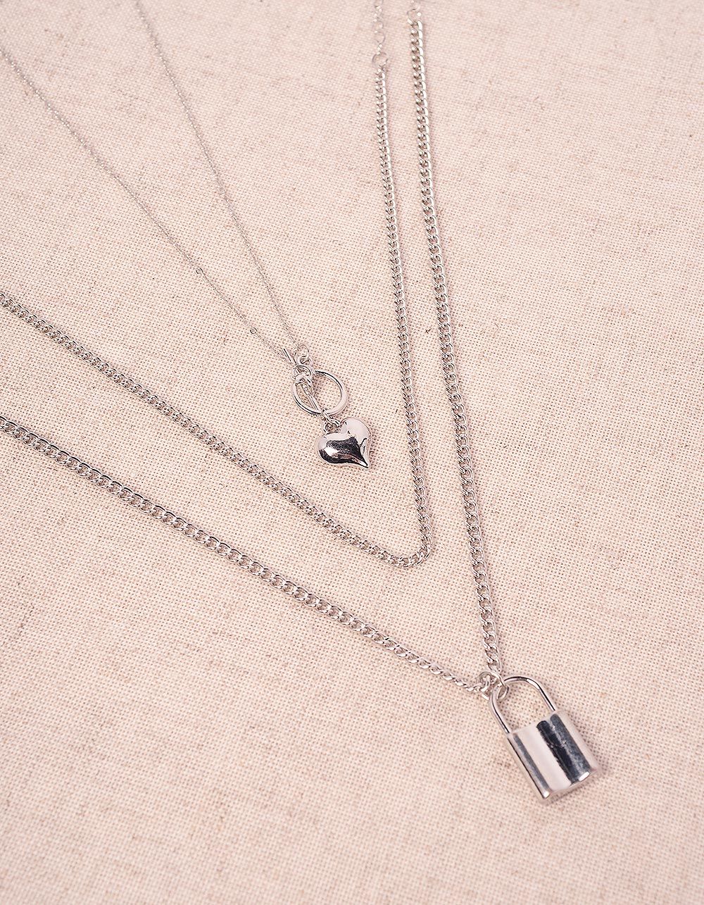 Підвіска на шию багатошарова з кулоном у вигляді серця та замка