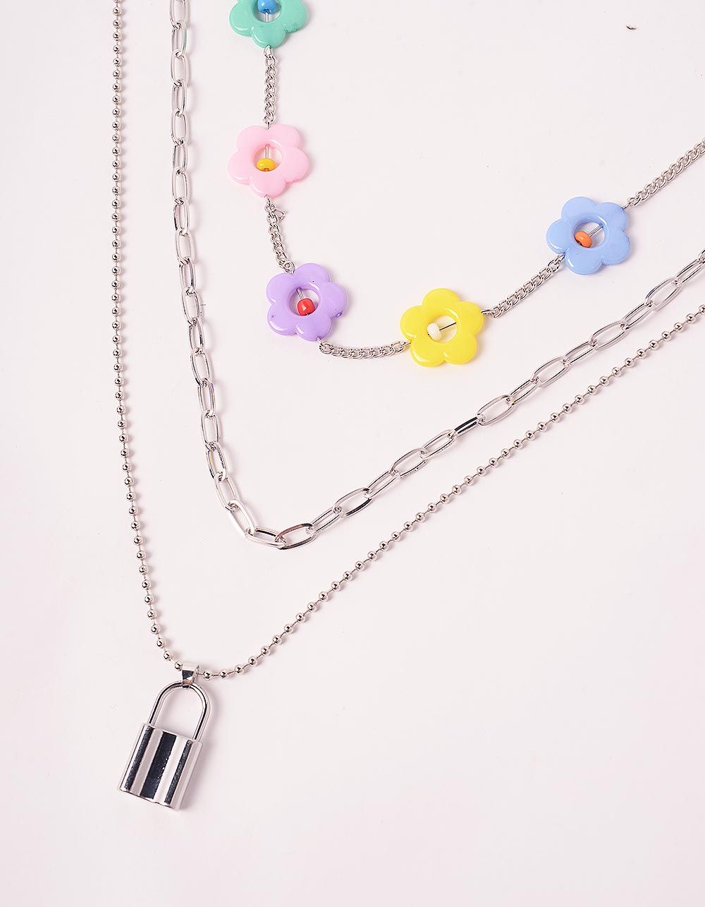 Підвіска на шию багатошарова з квітками та замком