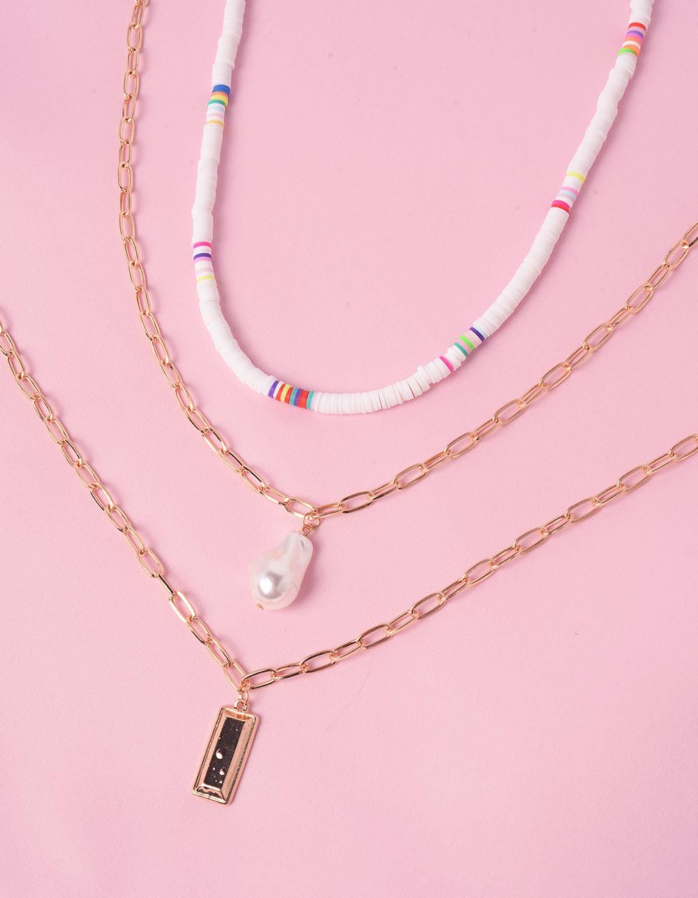 Підвіска на шию багатошарова із ланцюжків з перлиною