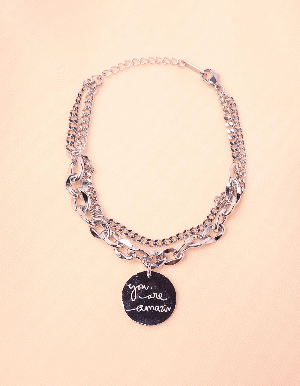 Браслет на руку у вигляді ланцюгів з написом на кулоні