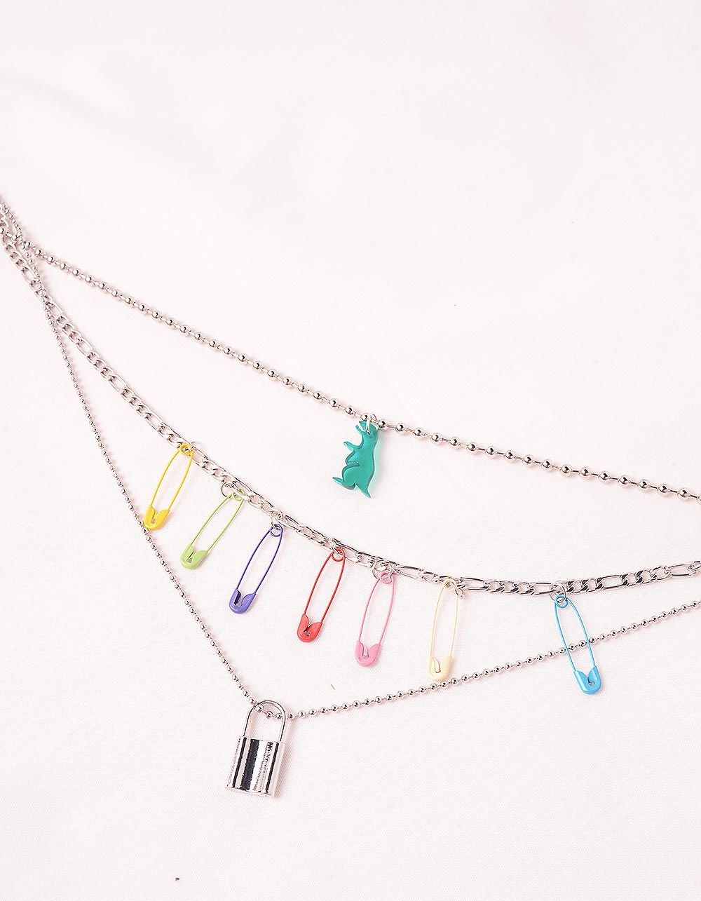 Підвіска на шию багатошарова з динозавриком та булавками