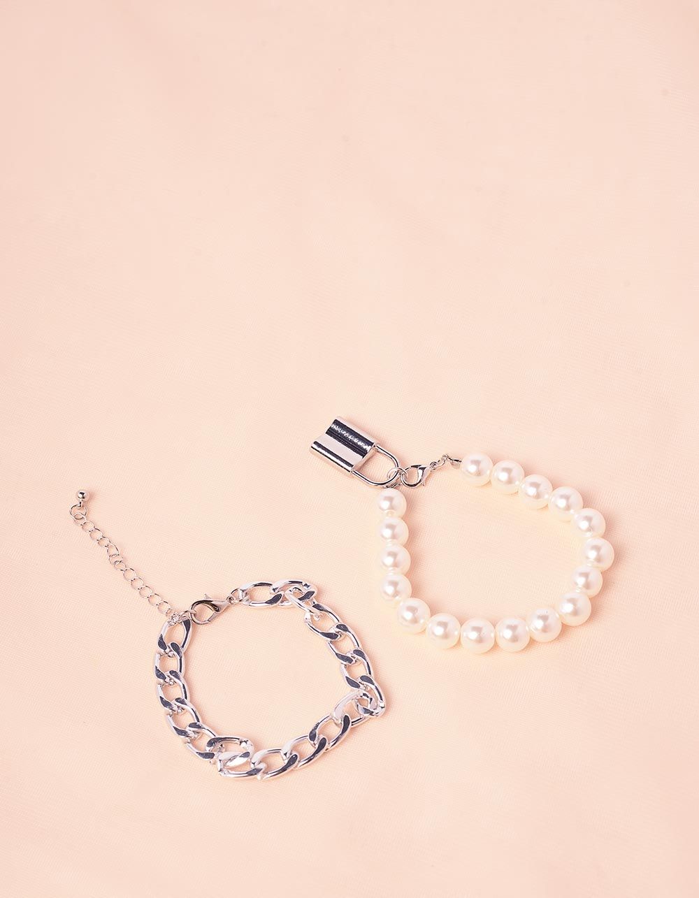 Браслет на руку подвійний із ланцюга та перлин з замком