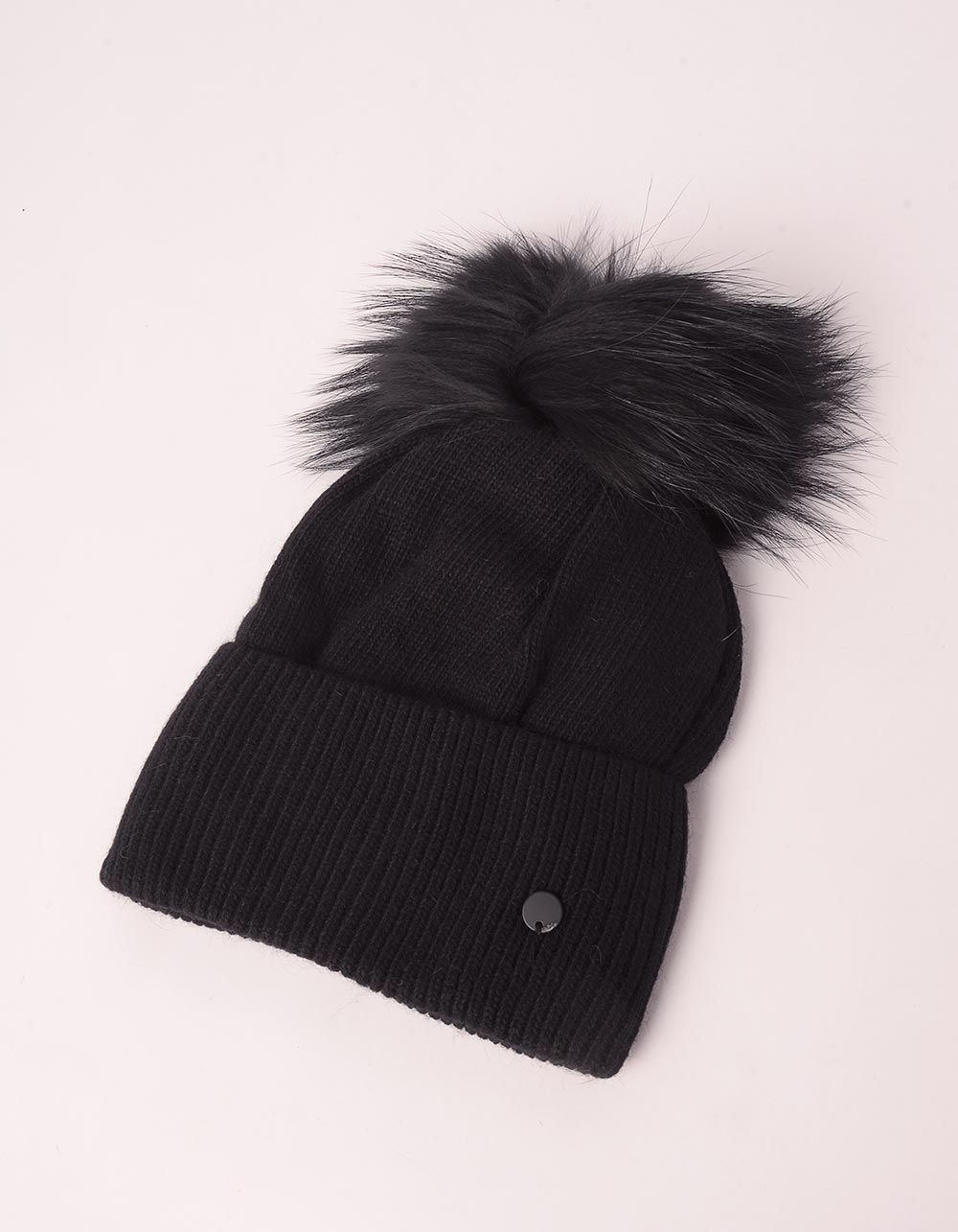 Шапка з помпоном із натурального хутра