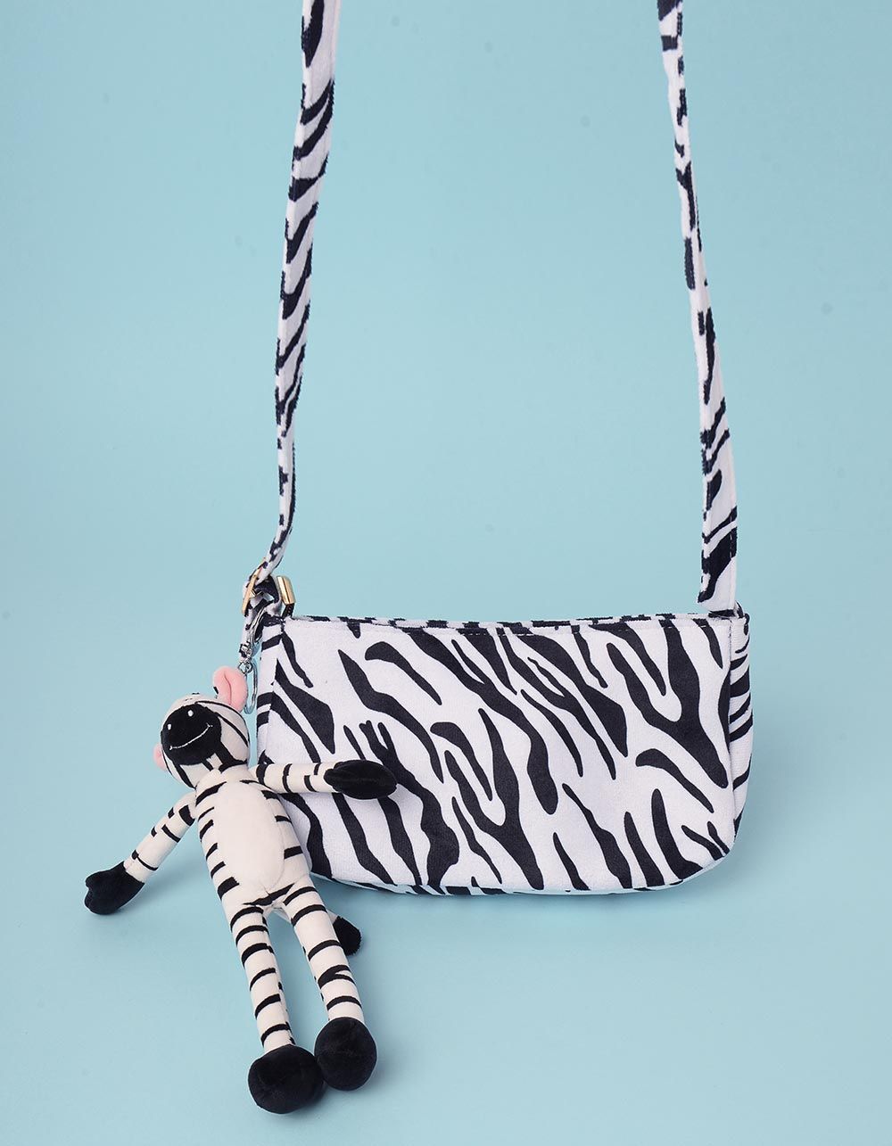 Сумка через плече з принтом та брелоком у вигляді зебри