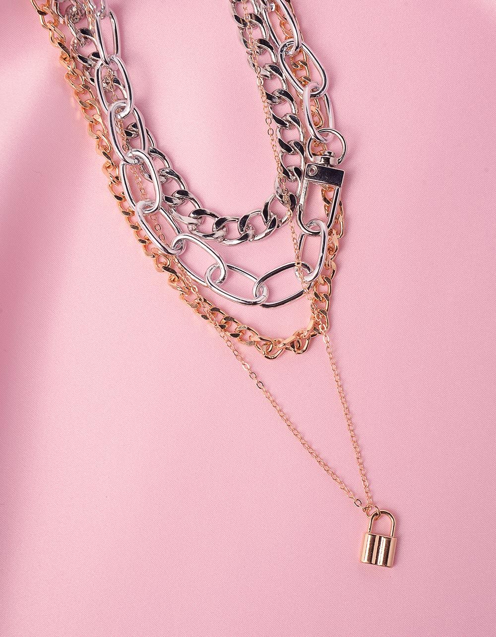 Підвіска на шию із ланцюгів з кулоном у вигляді замка