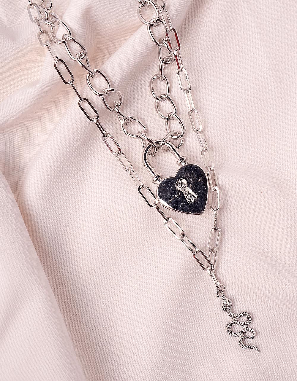 Підвіска на шию із ланцюжка з кулоном у вигляді змії та серця