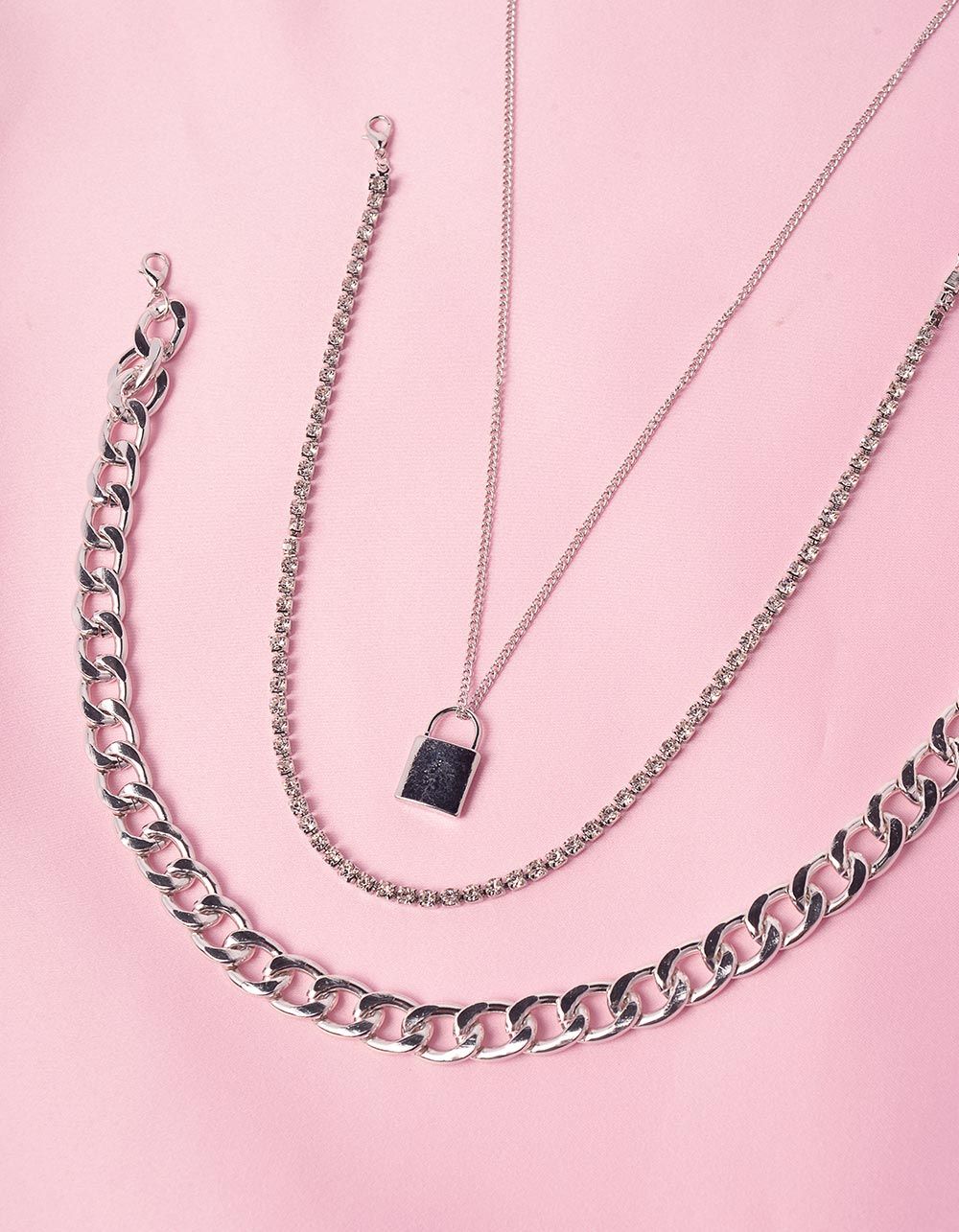 Підвіска на шию багатошарова із ланцюжків з кулоном у вигляді замка