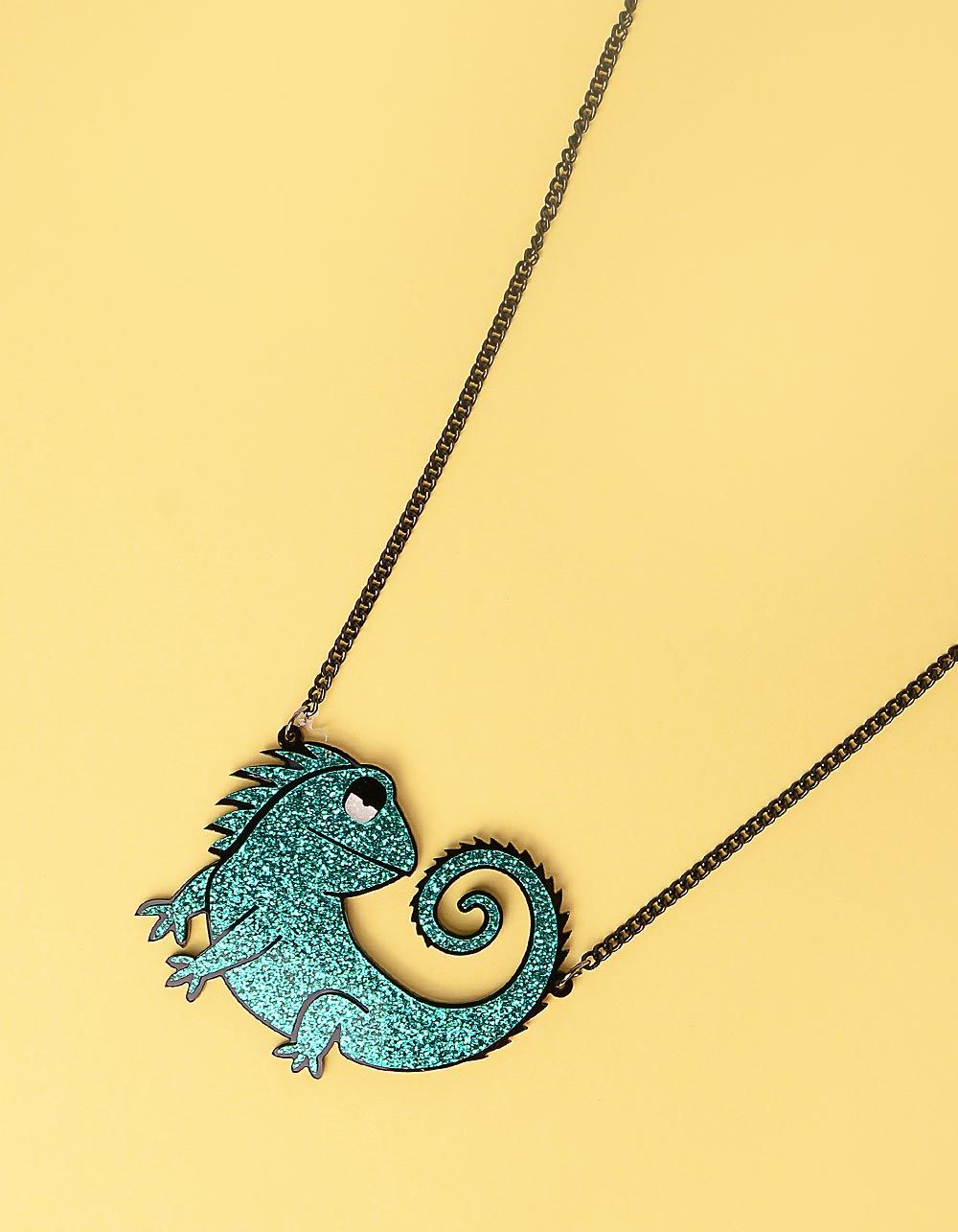 Підвіска на шию з кулоном у вигляді ящірки з блискітками