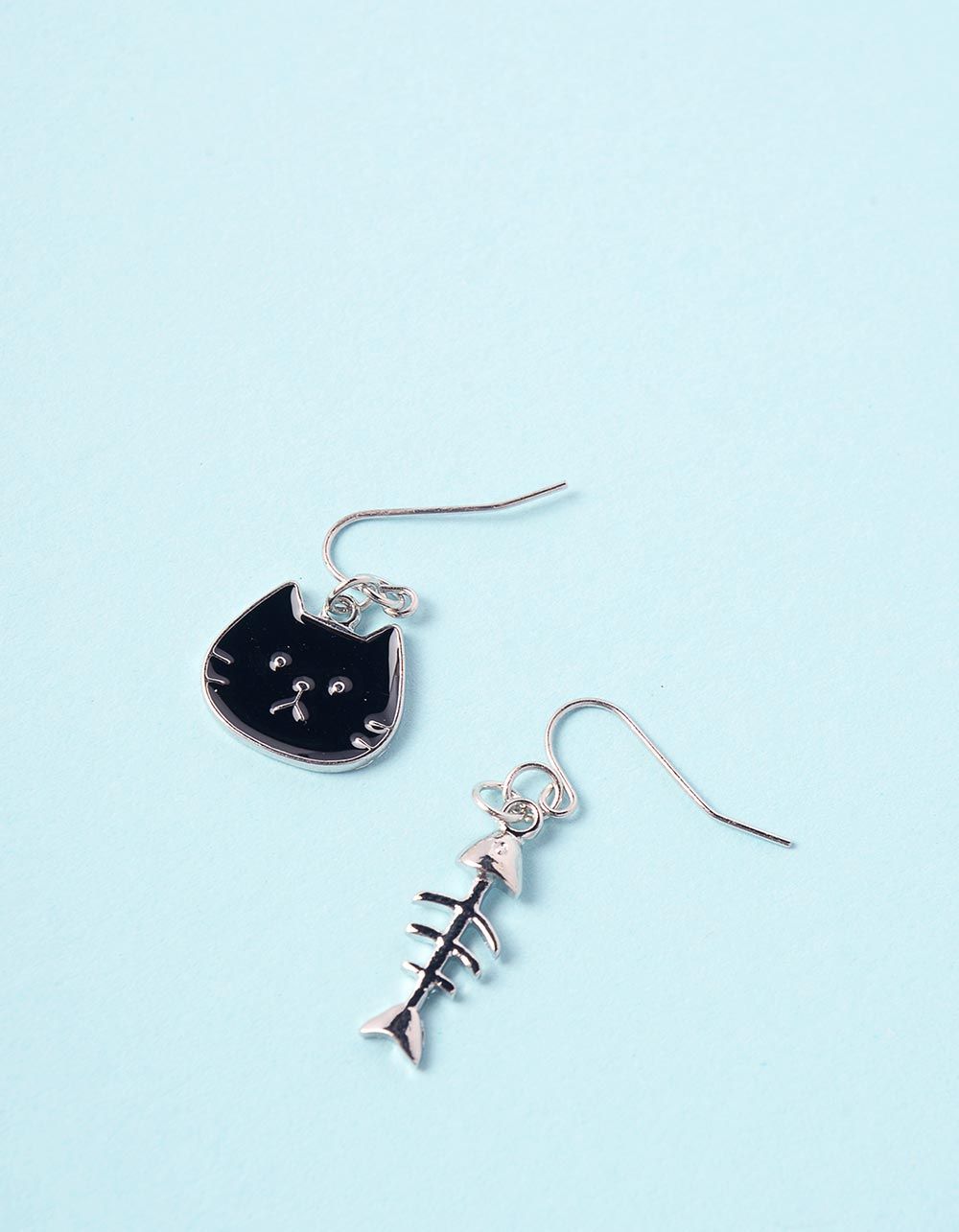 Сережки з підвісками у вигляді киці та скелета риби