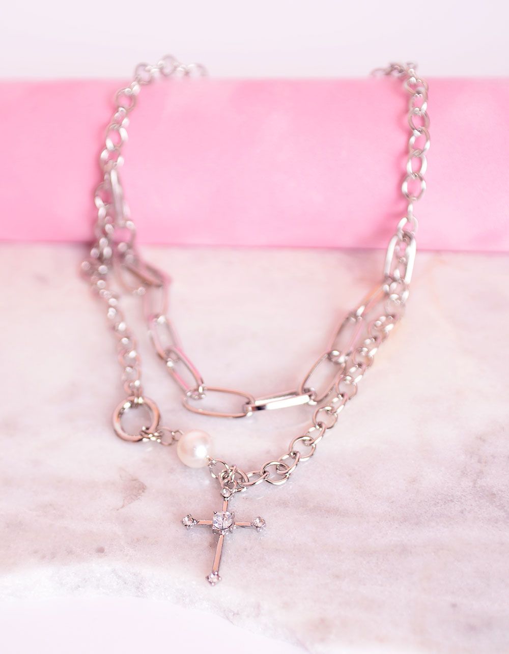 Підвіска на шию із ланцюга з хрестом та перлиною