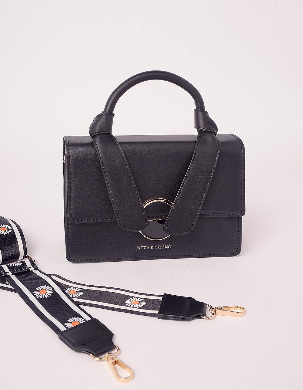Сумка на плече з принтом ромашок на ремінці