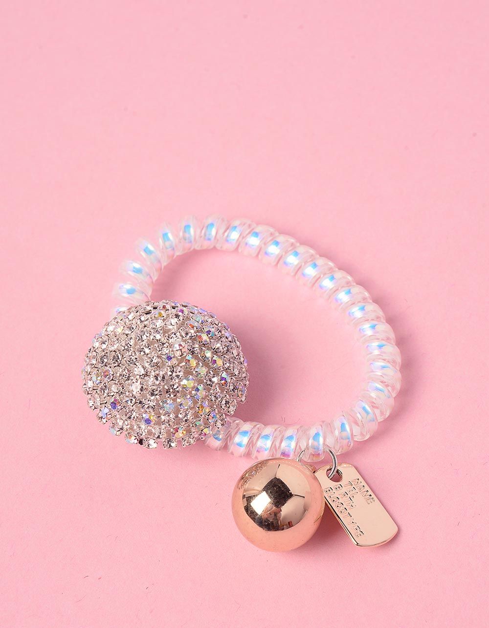 Резинка для волосся пружинка голографічна з кулькою із стразів