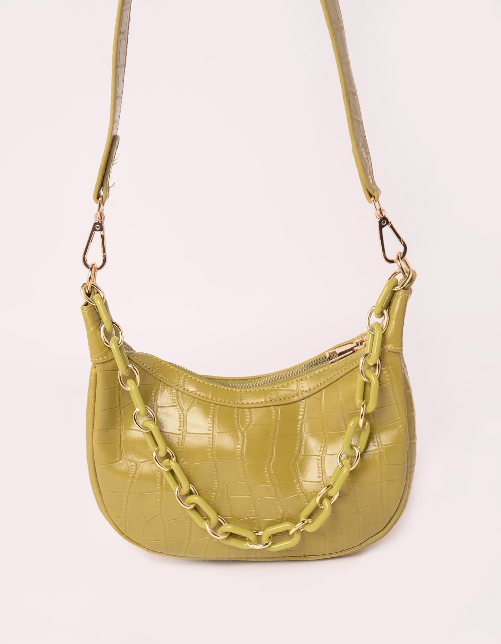 Сумка на довгому ремінці під шкіру крокодила з ланцюжком