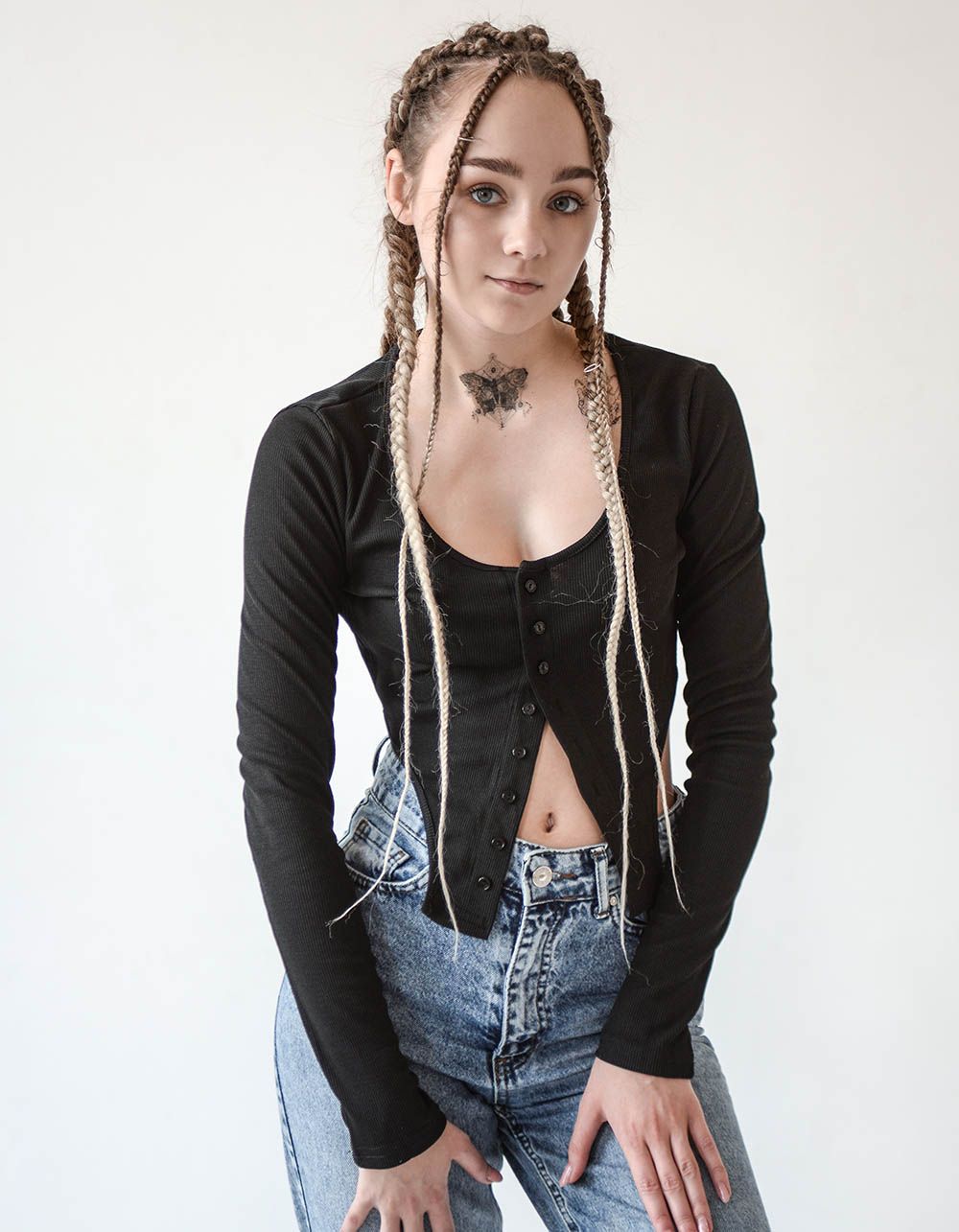 Топ з довгими рукавами на гудзиках