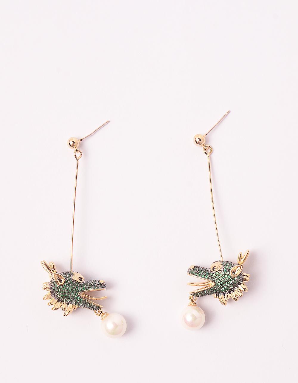 Сережки з підвісками у вигляді драконів з перлинами