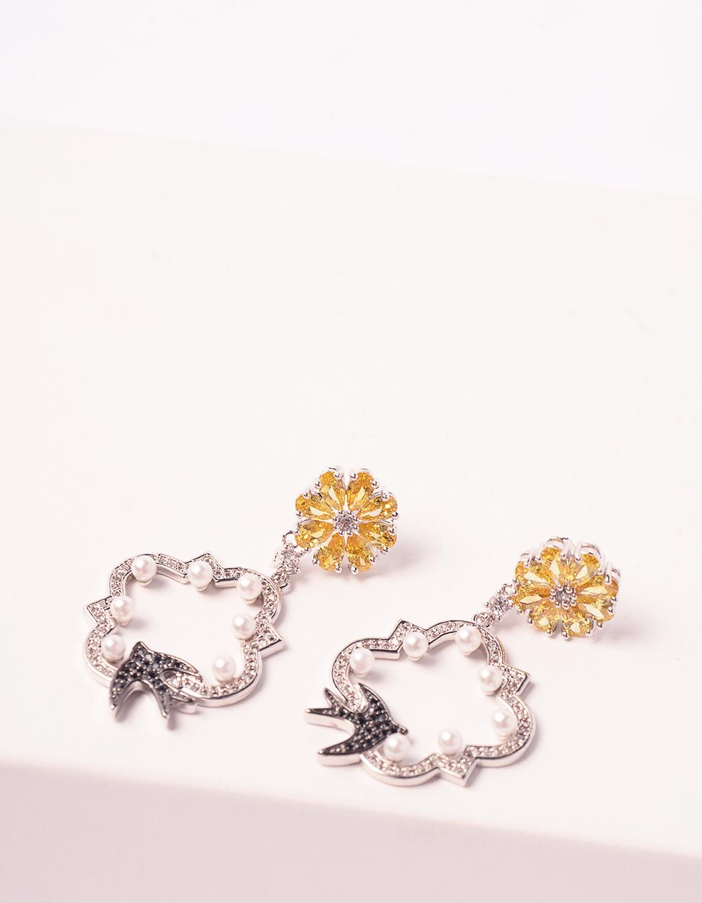 Сережки з квітами та ластівками декоровані перлинами