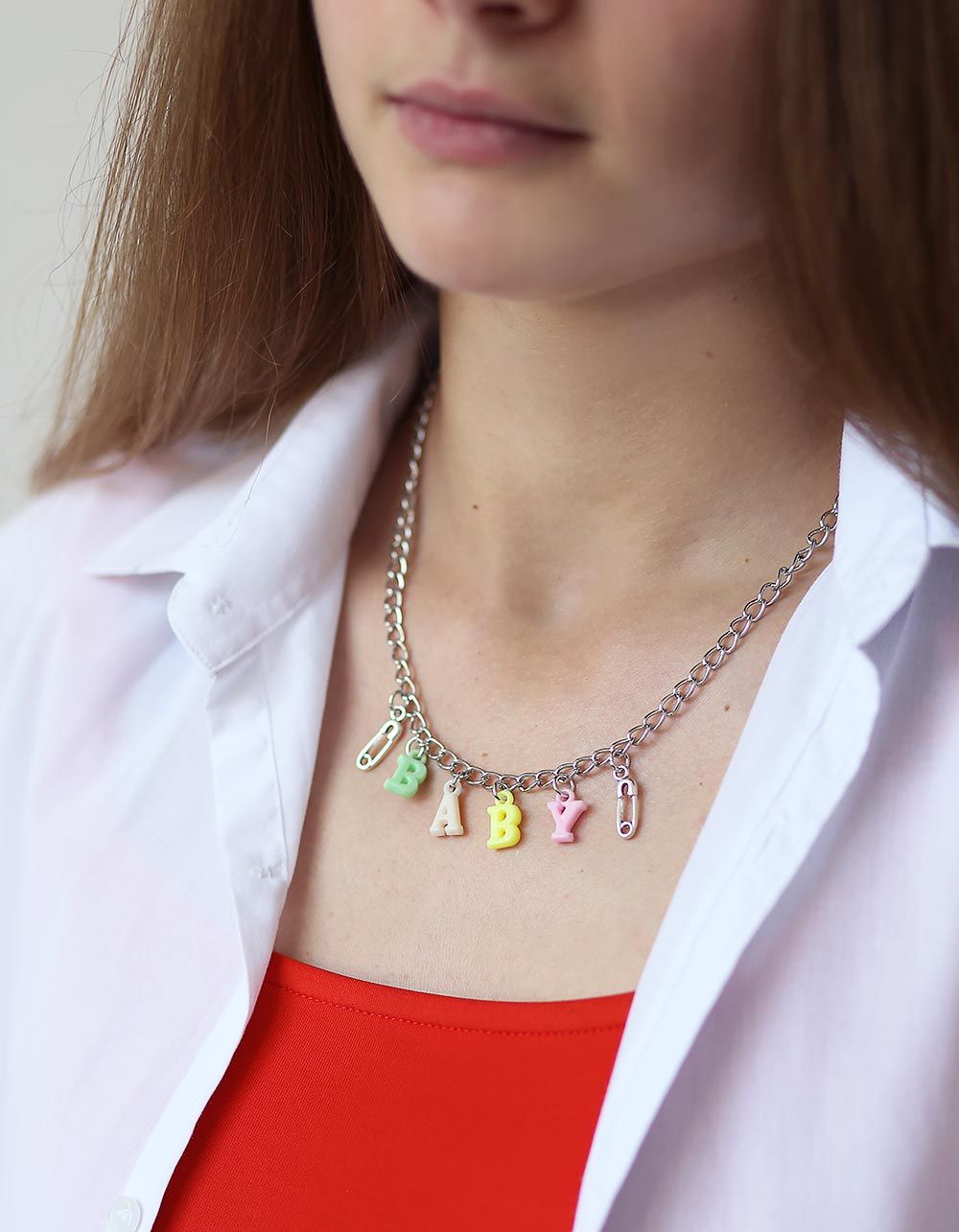 Підвіска на шию з булавками та написом BABY