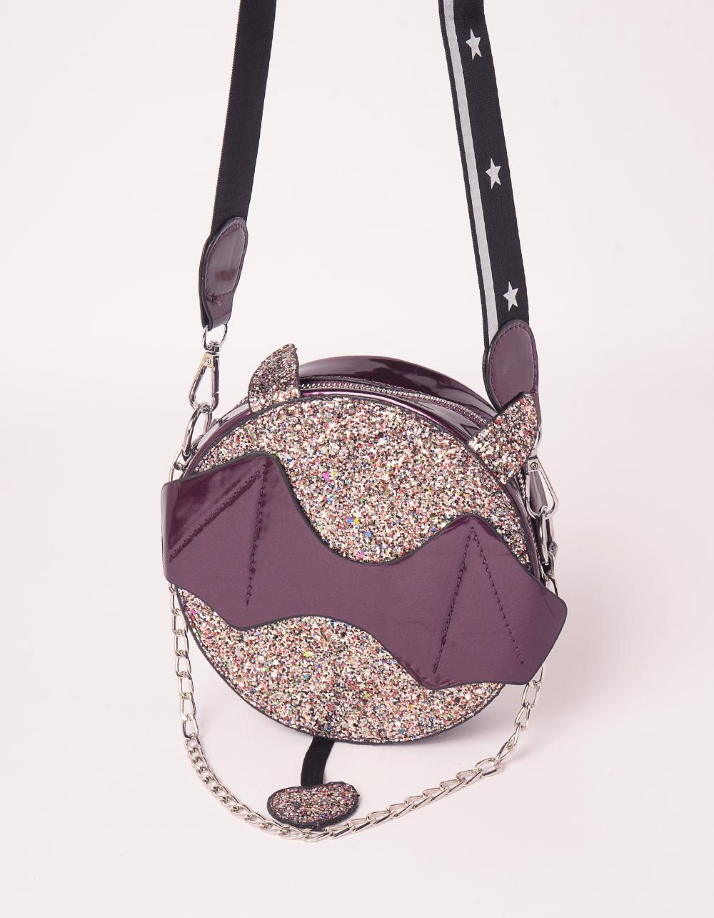 Сумка на плече кругла з блискітками у вигляді кажана