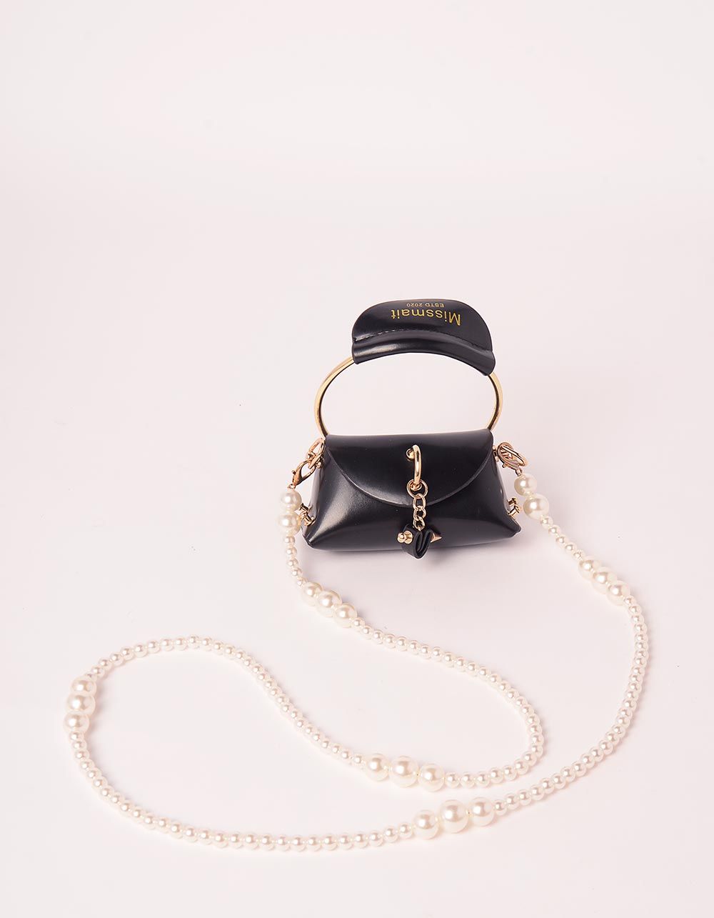 Сумка на довгому ланцюжку із перлин маленька з клапаном