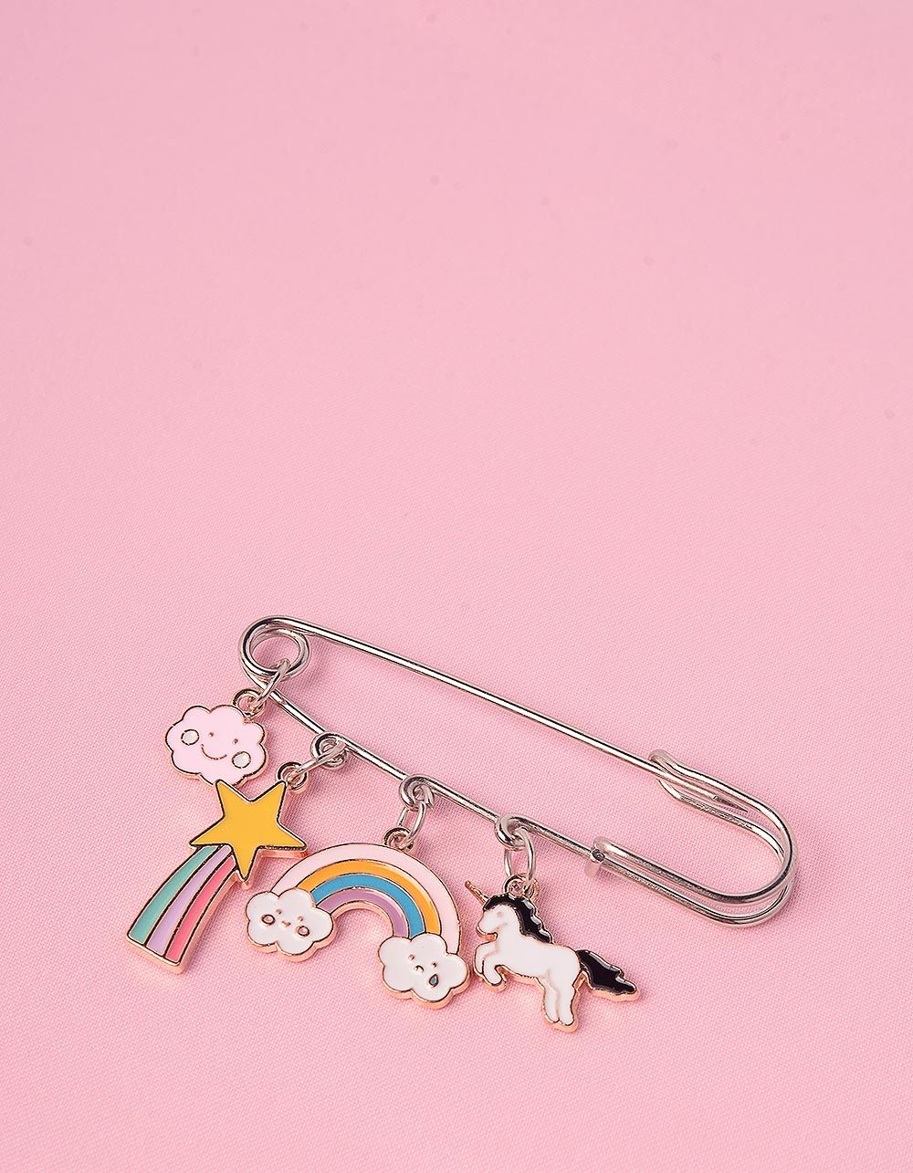 Брошка у вигляді булавки з єдинорогом та веселкою