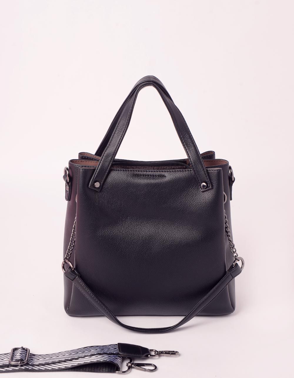 Сумка на плече зі смужками та ланцюжком на ремінцях