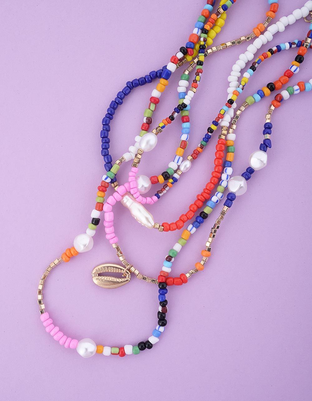 Підвіска чокер на шию у наборі із бісеру з кулоном у вигляді мушлі та перлинами