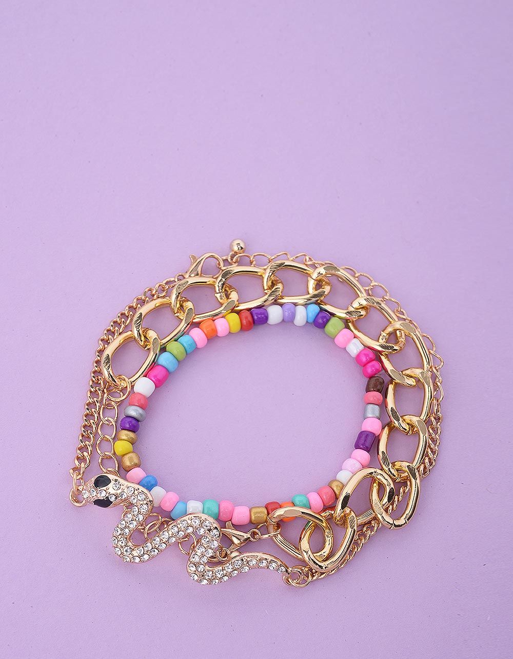 Браслет на руку із ланцюжків та бісеру з підвіскою у вигляді змії