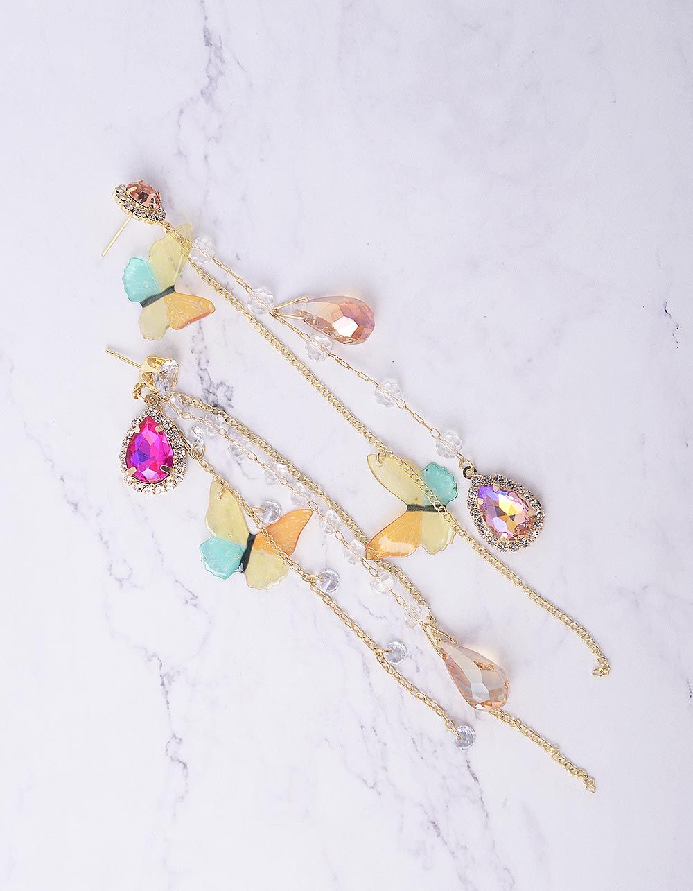 Сережки довгі з метеликами та камінням