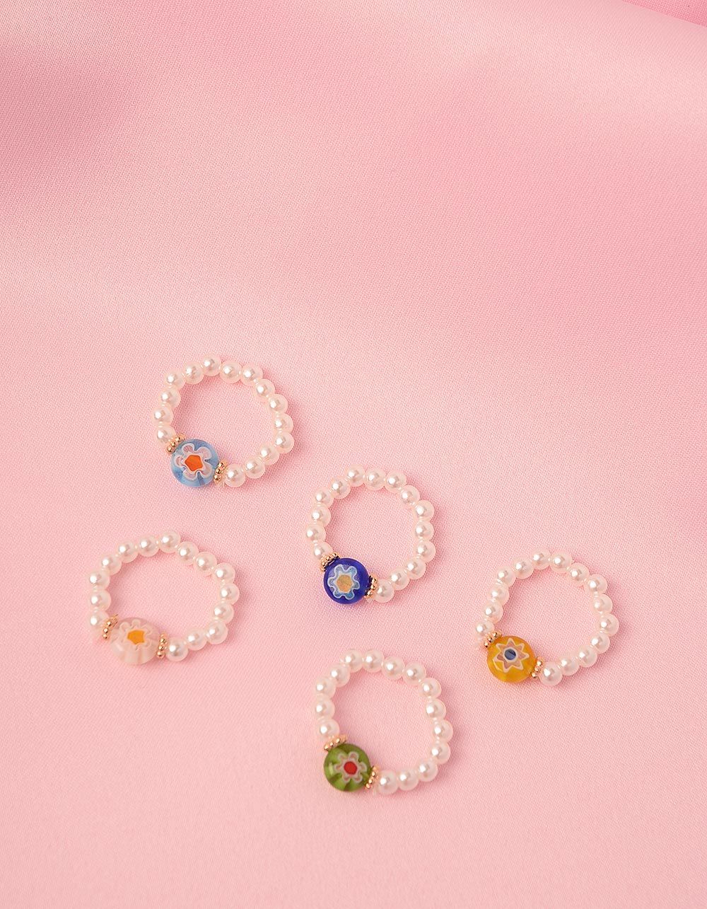 Кільця у наборі із перлин з принтом ромашки