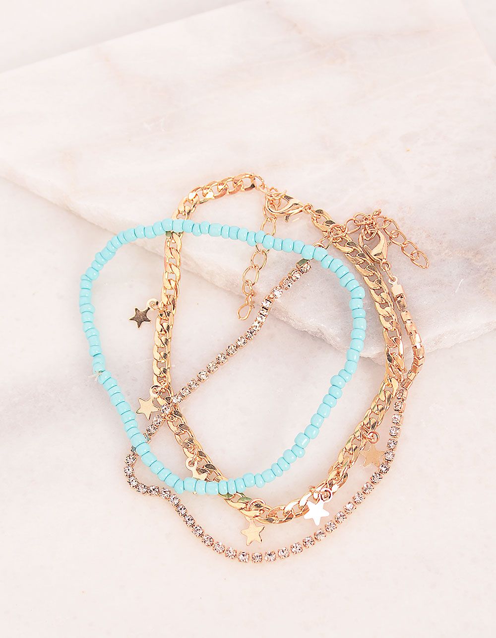 Браслет на ногу із ланцюжків з зірочками та бісеру