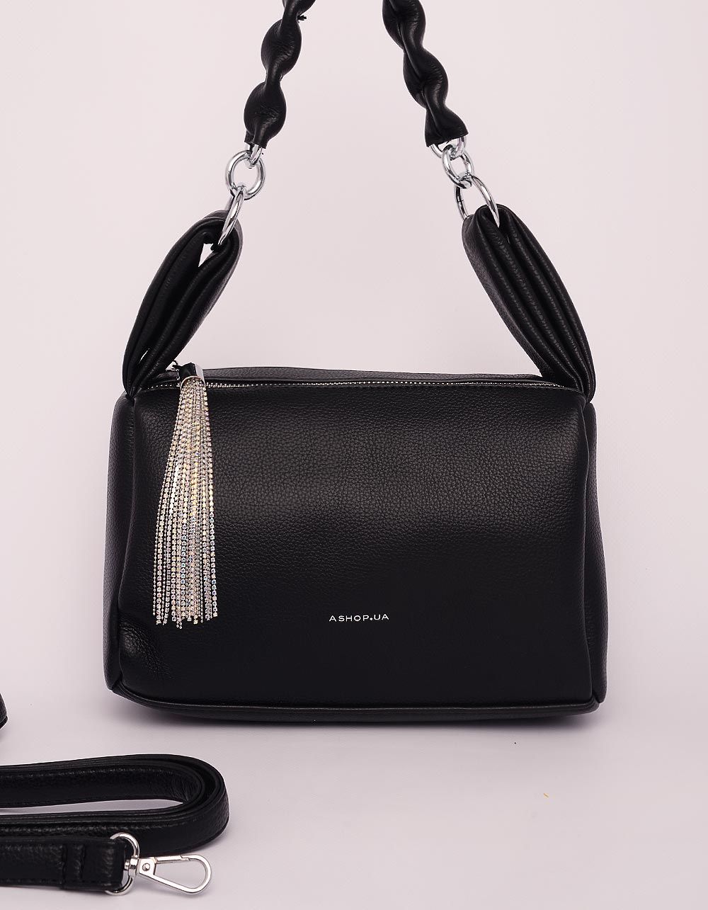 Сумка на плече з плетеною ручкою та китицею у стразах