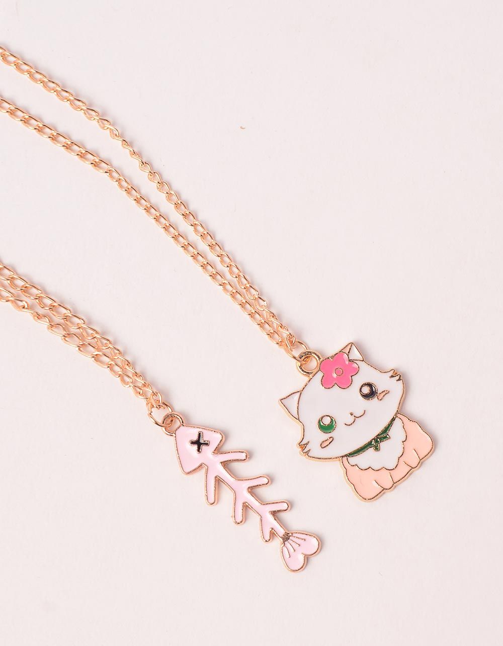 Підвіска на шию best friends з кулонами у вигляді киці та скелета риби