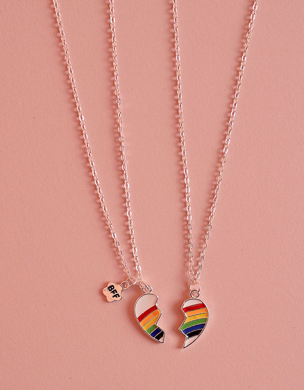 Підвіска на шию best friends з кулоном у вигляді серця з веселкою