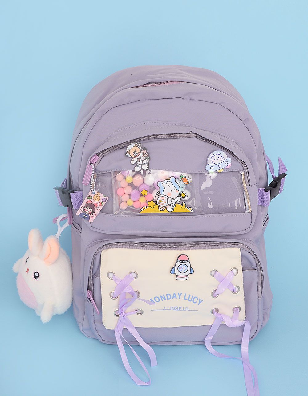 Рюкзак для міста зі значками та брелоком у вигляді зайця