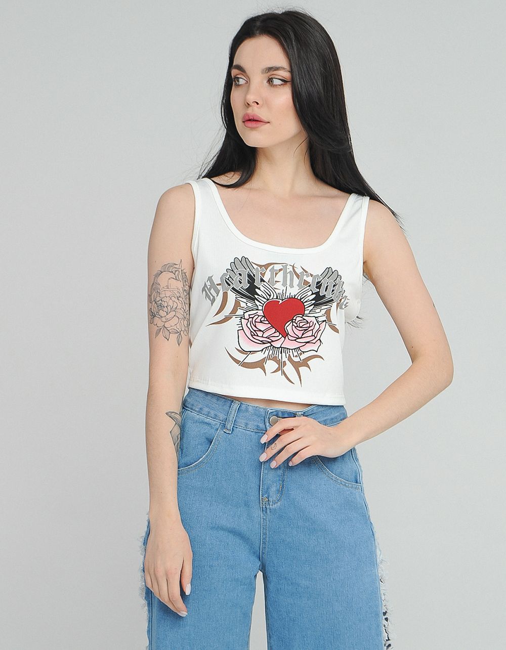 Топ з принтом серця та троянд
