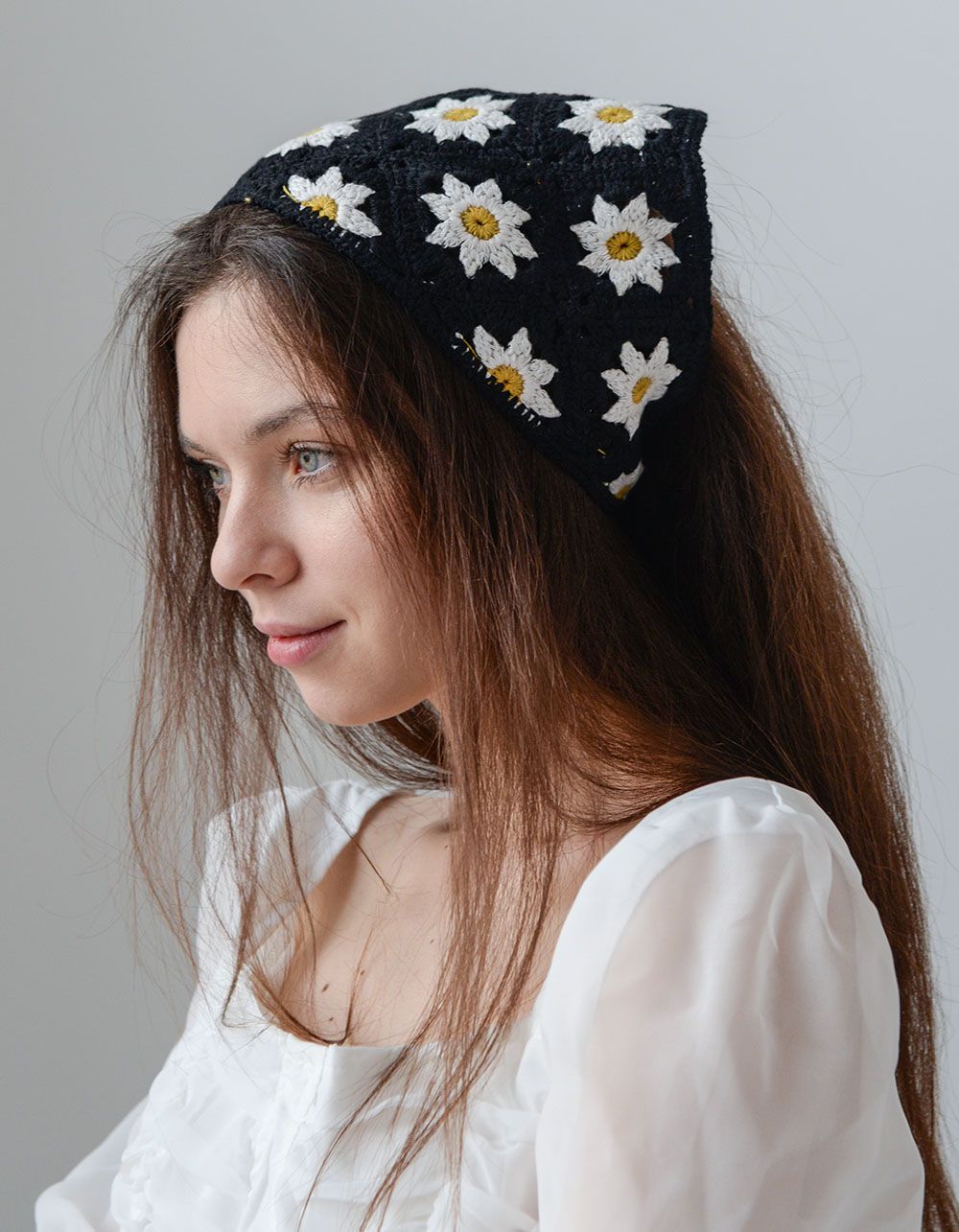 Хустка бандана в'язана з ромашками