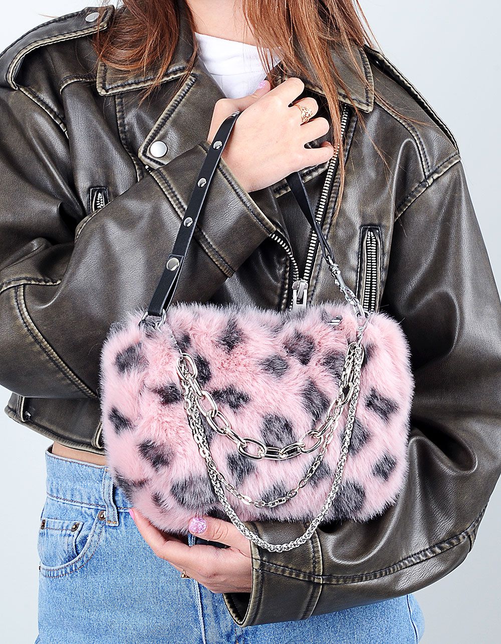 Сумка хутряна з орнаментом та ручкою із ланцюжків