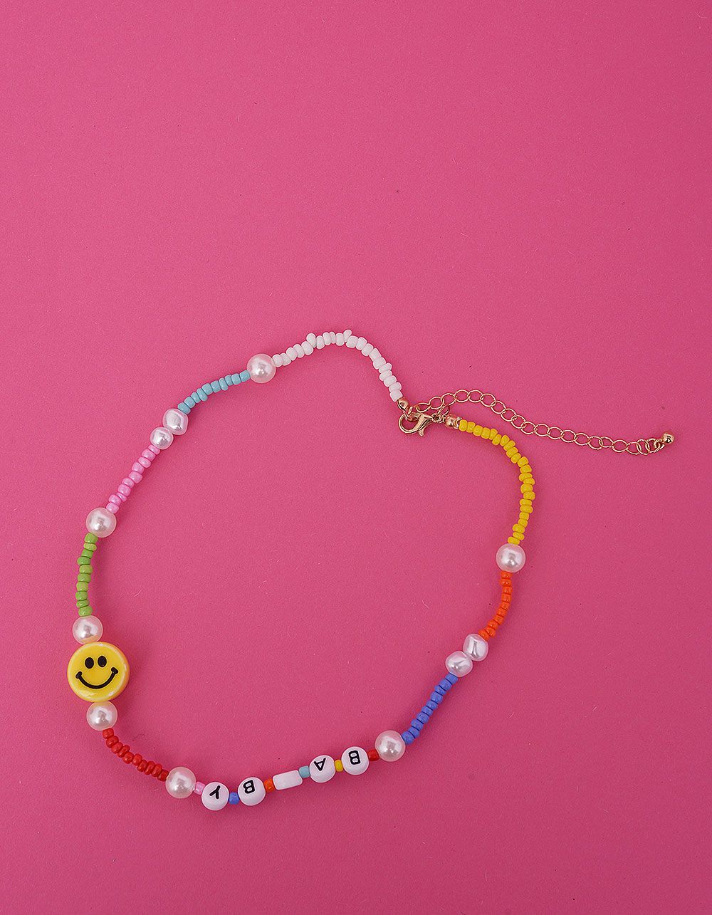Чокер на шию із бісеру з перлинами та смайликом