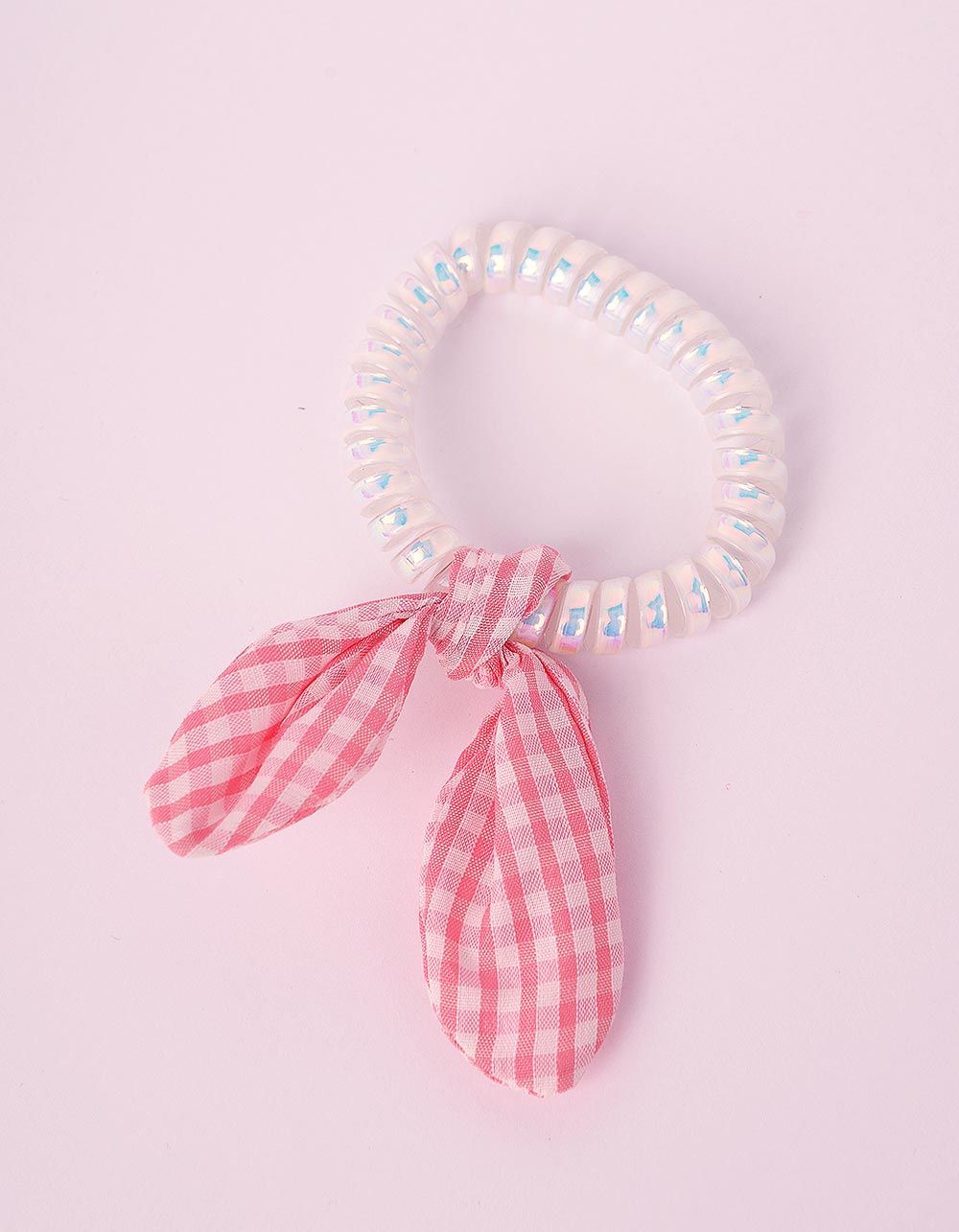 Резинка для волосся пружинка голографічна з бантом у клітинку