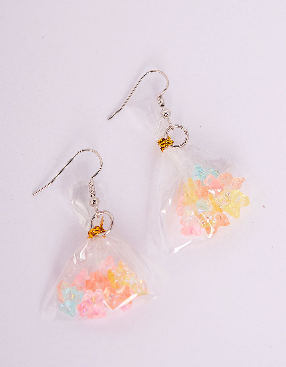 Сережки у вигляді прозорого мішечка з ведмедиками всередині