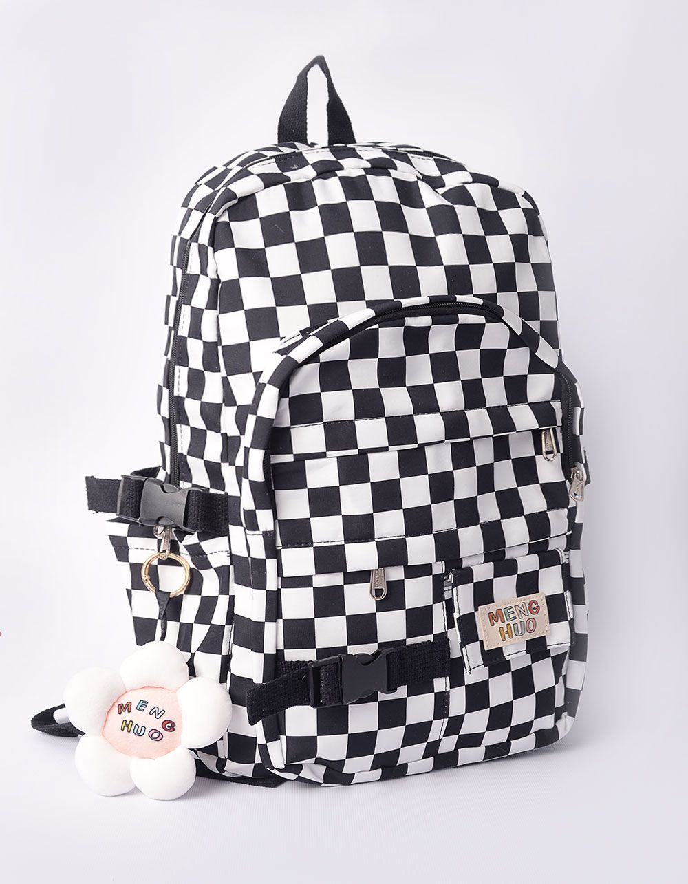 Рюкзак для міста у клітинку з брелоком у вигляді ромашки